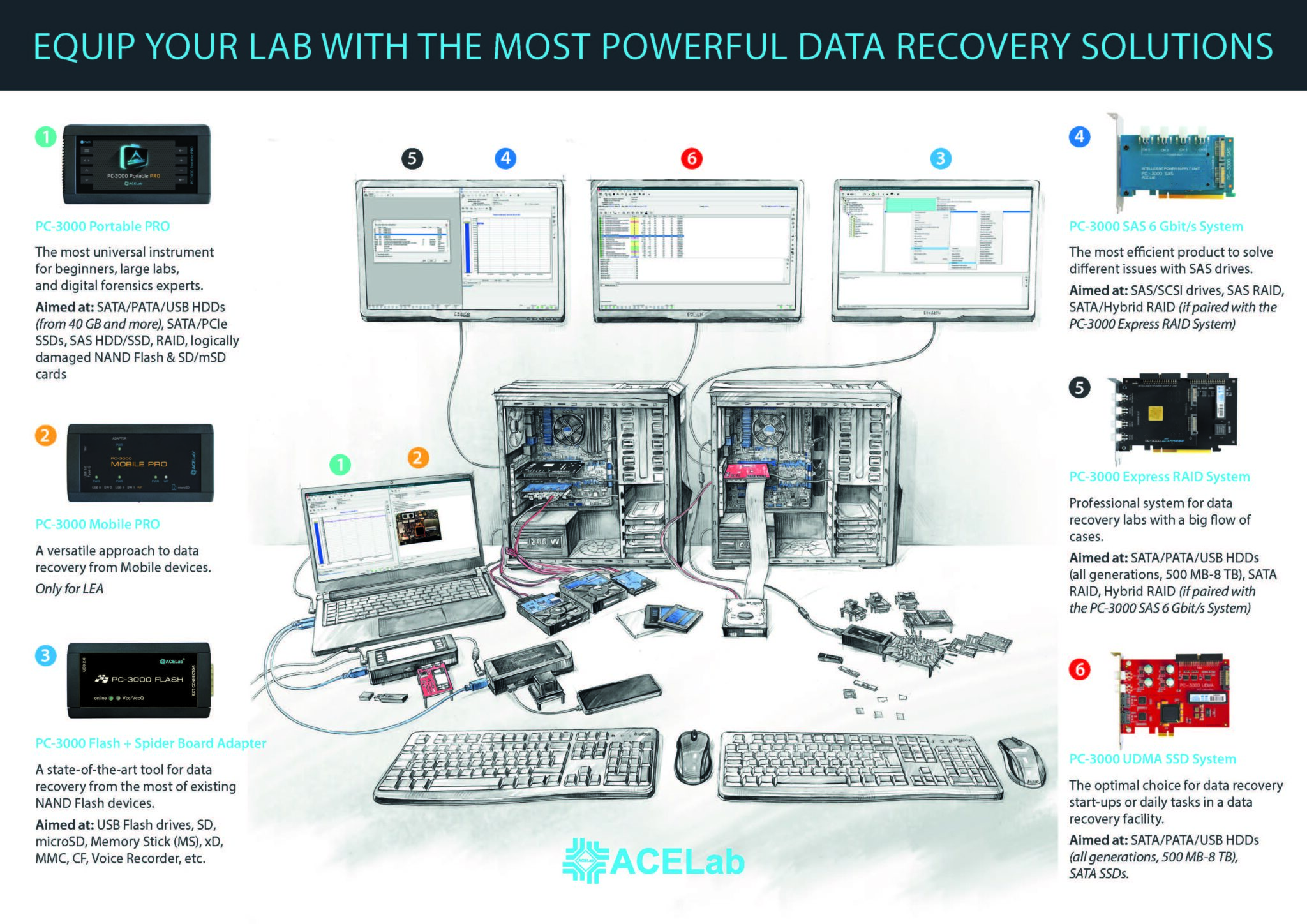 ACE Lab (Advanced Computer Engineers Laboratory) was founded in 1992 and is a global leader in data recovery technologies. Headquartered in Europe, ACE Lab focuses on developing advanced data recovery and digital forensics solutions. Its flagship PC-3000 product line is widely used by data recovery companies, law enforcement agencies, military and police units, and large IT enterprises worldwide.